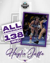 At 138 pounds, Haylie Jaffe (McKendree) added another All-American performance to her career with a third-place finish. Jaffe closed her tournament with a 5–3 decision over Lilly Luft (Iowa) in the bronze-medal match, helping McKendree secure the team national championship.